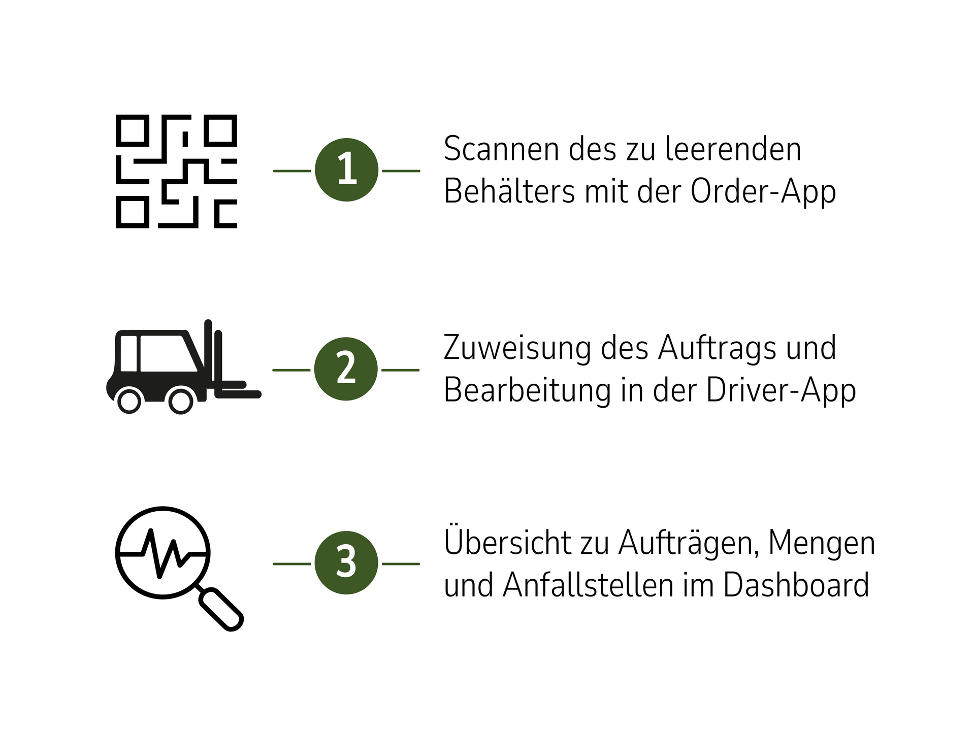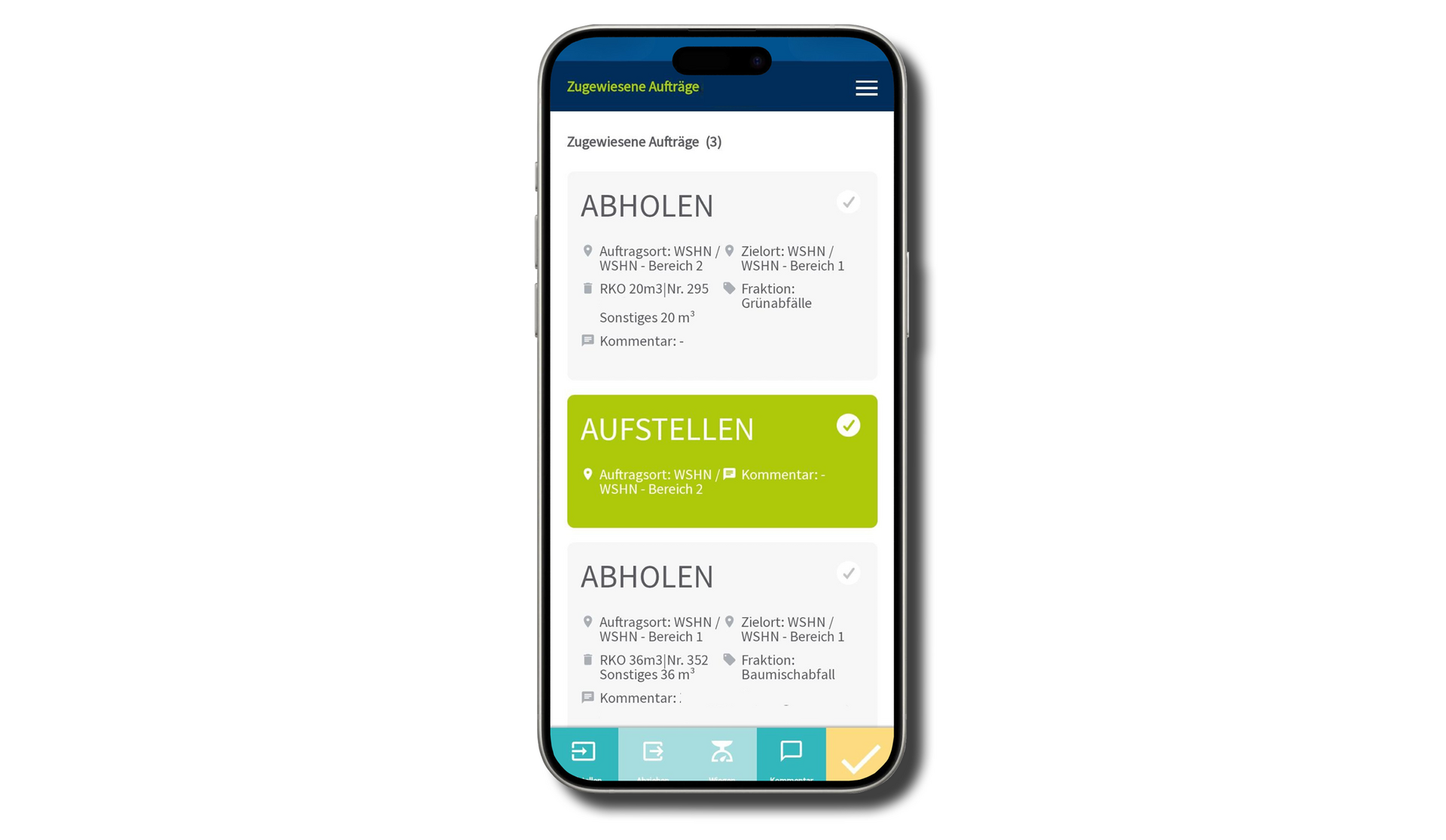 Die Aufträge werden digital einzelnen Mitarbeitenden zugewiesen. Die internen Entsorgungsteams erhalten ihre Aufträge auf dem Smart Device und dokumentieren die Leerung ebenfalls per Scan.