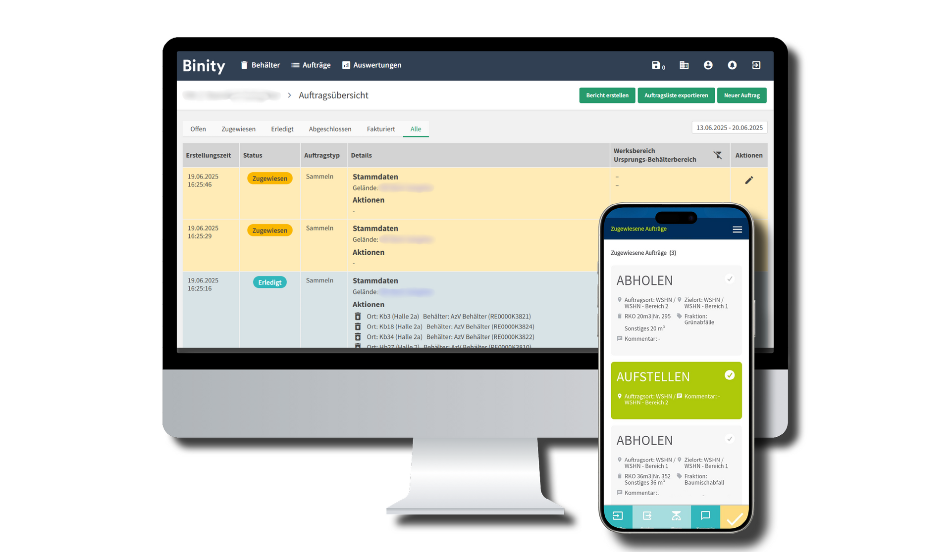 Innerbetriebliche Leerungsbeauftragung per Scan sowie Einsicht in alle Aufträge & deren aktuellen Status