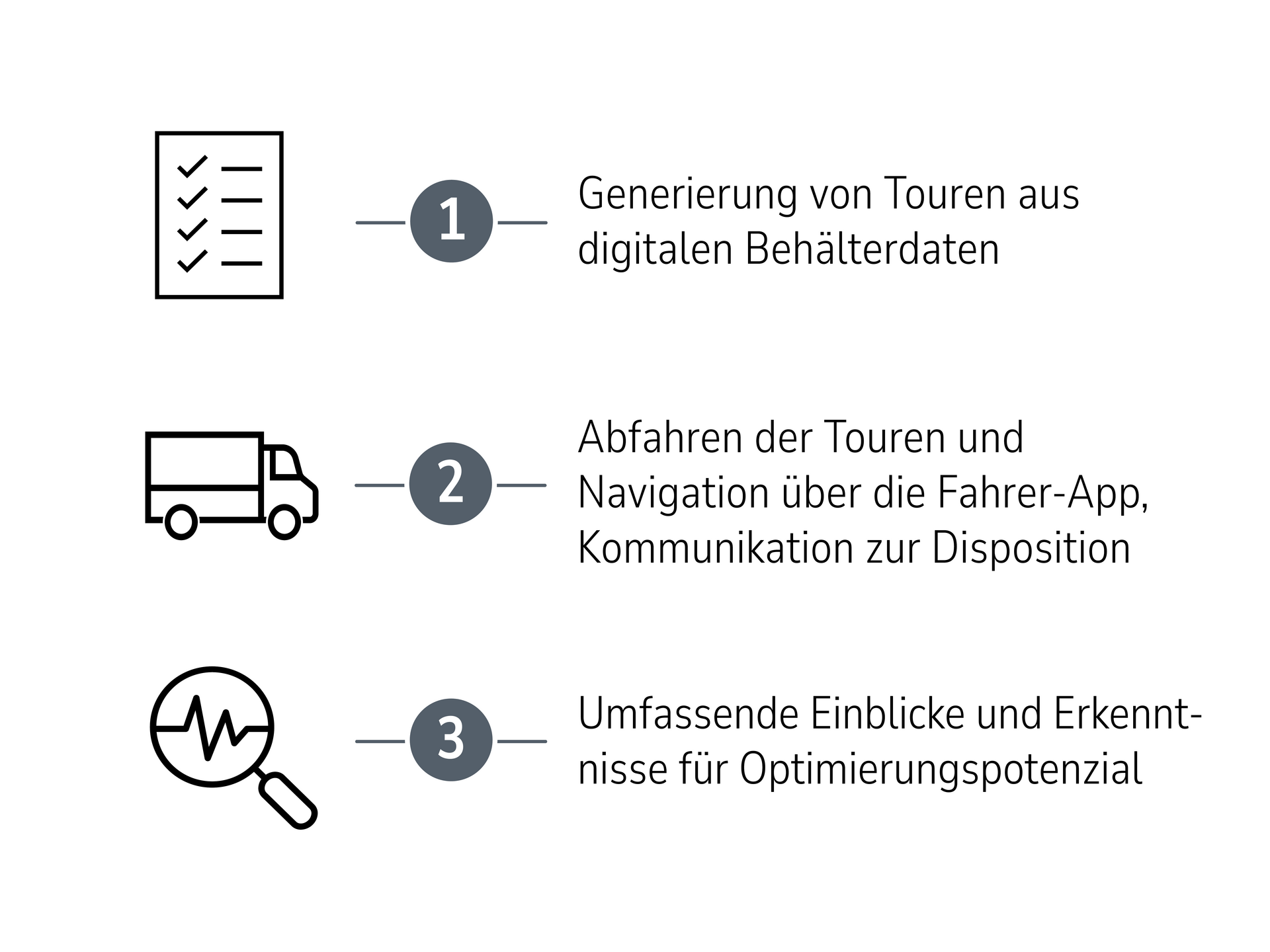 Automatisieren Sie Routineaufgaben und planen Sie Leerungstouren flexibel, bedarfsgerecht und auf Basis von Daten